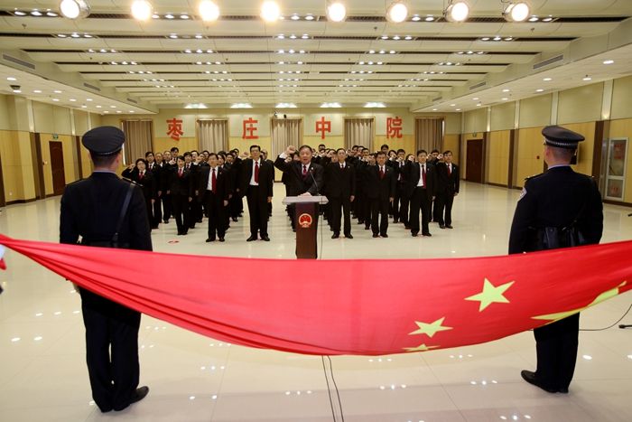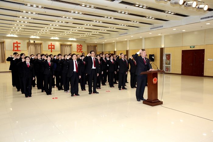 为深入贯彻党的十九大精神,维护宪法权威,营造尊法学法守法用法浓厚氛围,12月4日,在第四个国家宪法日到来之际,枣庄中院组织开展了“12·4”国家宪法日系列活动。 组织法官宪法宣誓 上午10点15分,中院党组副书记、副院长梁克国作为领誓人,带领中院员额法官,面向国旗,高举右拳,庄严宣誓。