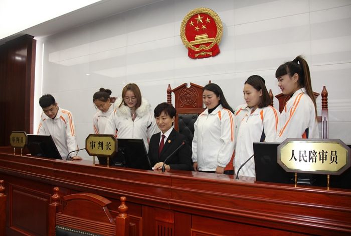 4 开展“法院开放日”活动 邀请枣庄经济学校60余名师生走进中院,参观学习。在讲解员的引导下,同学们先后参观了院史馆、信息集控中心、图书馆、诉讼服务中心、审判法庭等场所,实地了解了法院的机构设置、职能划分和诉讼程序。综合审判庭法官结合审判案例,深入浅出地为同学们上了一堂生动的法制教育课。最后,同学们穿上法袍,拿起法槌,走上审判台,体验了作为一名法官所特有的公正、威严的感觉。