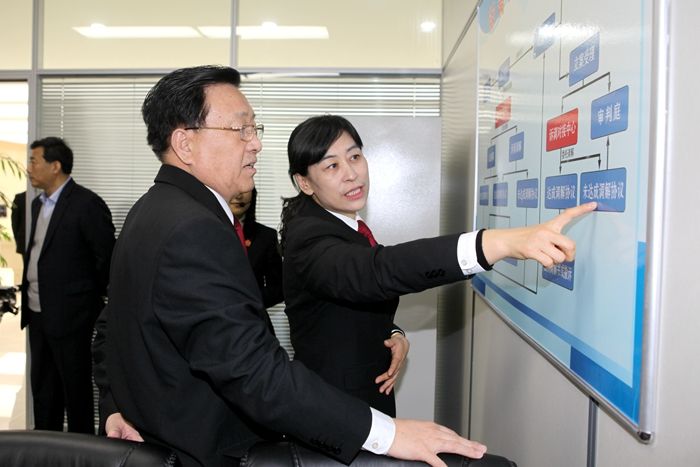 12月11日,最高法院党组成员、审委会委员孙华璞莅临枣庄法院就审判监督工作进行专项调研。省法院党组书记、院长白泉民,枣庄市委副书记、市长李峰参加活动。省法院党组成员、副院长吴锦标,枣庄市委常委、政法委书记于玉,中院党组书记、院长孙英等陪同调研。 调研期间,孙华璞一行先后到中院、薛城区法院检查指导工作。在中院,孙华璞一行实地察看了诉讼服务中心、减刑假释案件审理科技法庭、信息集控中心和院史馆,观看了减刑假释案件远程视频开庭和信息化办案平台操作演示,详细了解了中院审判监督等工作情况,重点了解了中院减刑假释信息化办案平台建设应用情况。在薛城区法院,孙华璞一行实地察看了诉调对接中心、远程视频接访室等场所。每到一处,孙华璞都与工作人员进行亲切交谈,详细询问大家的工作、生活情况,鼓励大家扎实工作、再创佳绩。 实地察看枣庄中院诉讼服务中心